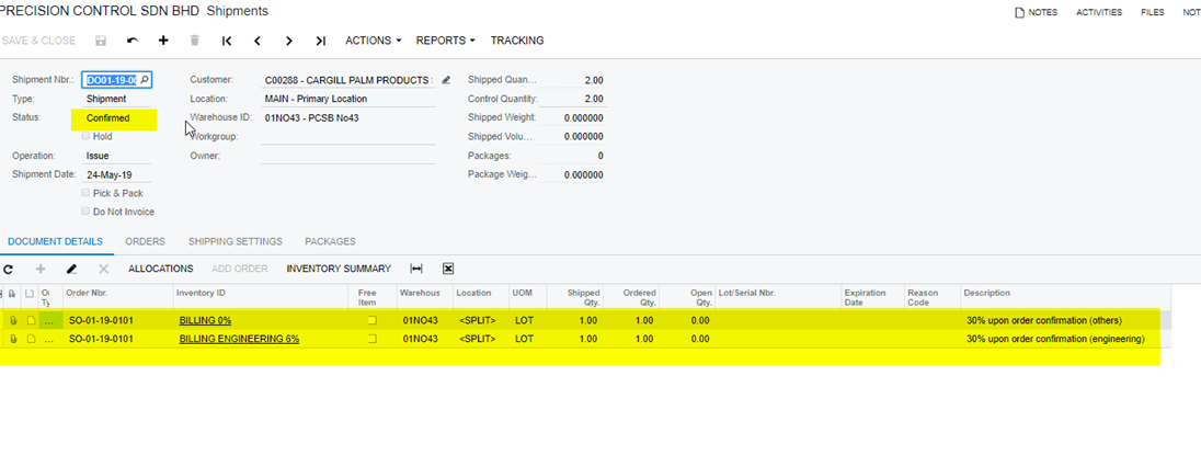 I require to prepare 2 shipments for below 4 items due to it is different invoice. Item 1&2 for 1 shipment (invoice no.1), Item 3&4 for another shipment (invoice no.2). When 1 prepare 1st shipment, in the shipment screen, it come out 4 items, hence I delete 2 items (item 3 & 4) and I complete the shipment (refer below screen shot no. 2). When I going to prepare second shipment, it come out the message I have no item to ship, and I found the item 3 & 4 already check completed, I think this is why I cannot prepare the second shipment. But the question is, why item 3 & 4 will become completed automatically. I have try this scenario again in test system, it is still the same. Please check and feedback. Thanks.