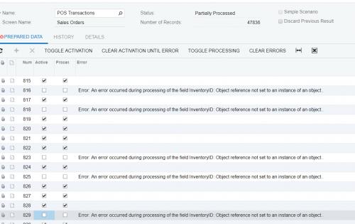 I had this error while importing in Sales Order, I tried to ask the partner here of acumatica but they dont know the cause or solution, do you have any idea why this thing occur? pls refer to the screen shot. thanks.
