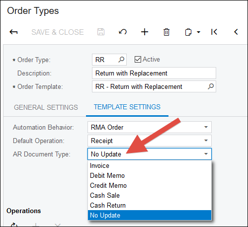Here's a nice chart on the predefined return Order Types. You can see how RR is not setup for invoicing out-of-the-box: